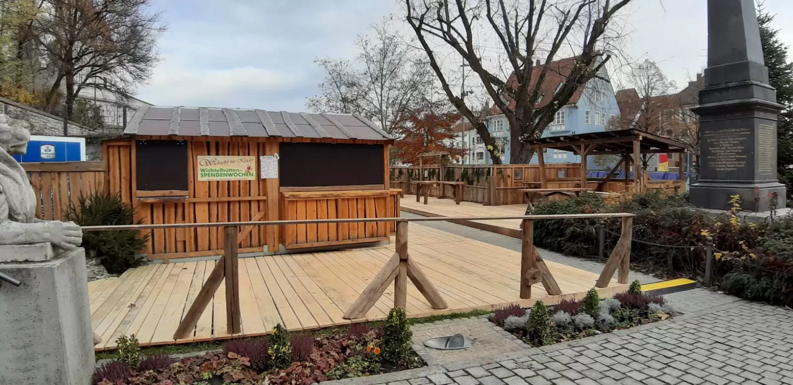 Nach monatelanger Planung und zahlreiche Arbeitsstunden später steht die Wichtelhütte nun endlich an Ihrem neuen Standort im Hofgarten. Wir haben uns in diesem Jahr richtig für euch ins Zeug gelegt und ein paar neue Stehtische, sowie einen Holzaufbau gebaut. Neben unserer Hütte darf natürlich auch der Rahmfleck Stand von Ofen Ziegler nicht fehlen und auch der Klowagen hat einen Standplatz gefunden. Hier geht es zur Bildergalerie! Nur noch ein paar Handgriffe und dann können wir mit euch zusammen am Donnerstag, den 28. November die Eröffnung feiern!